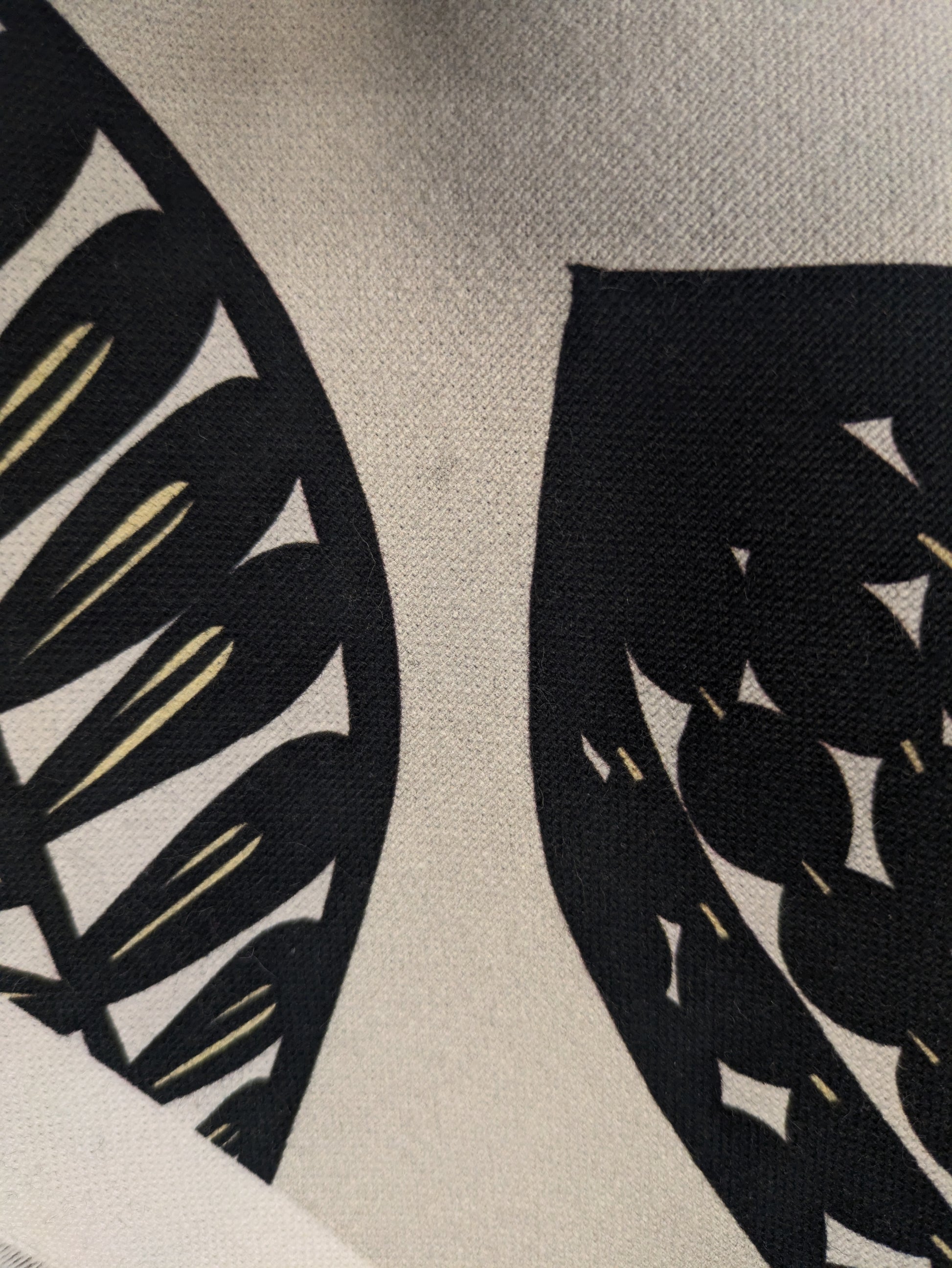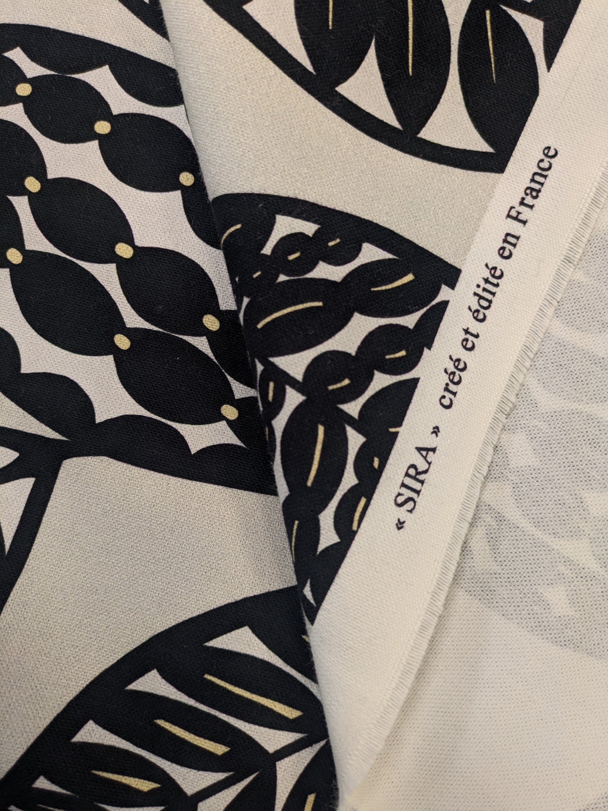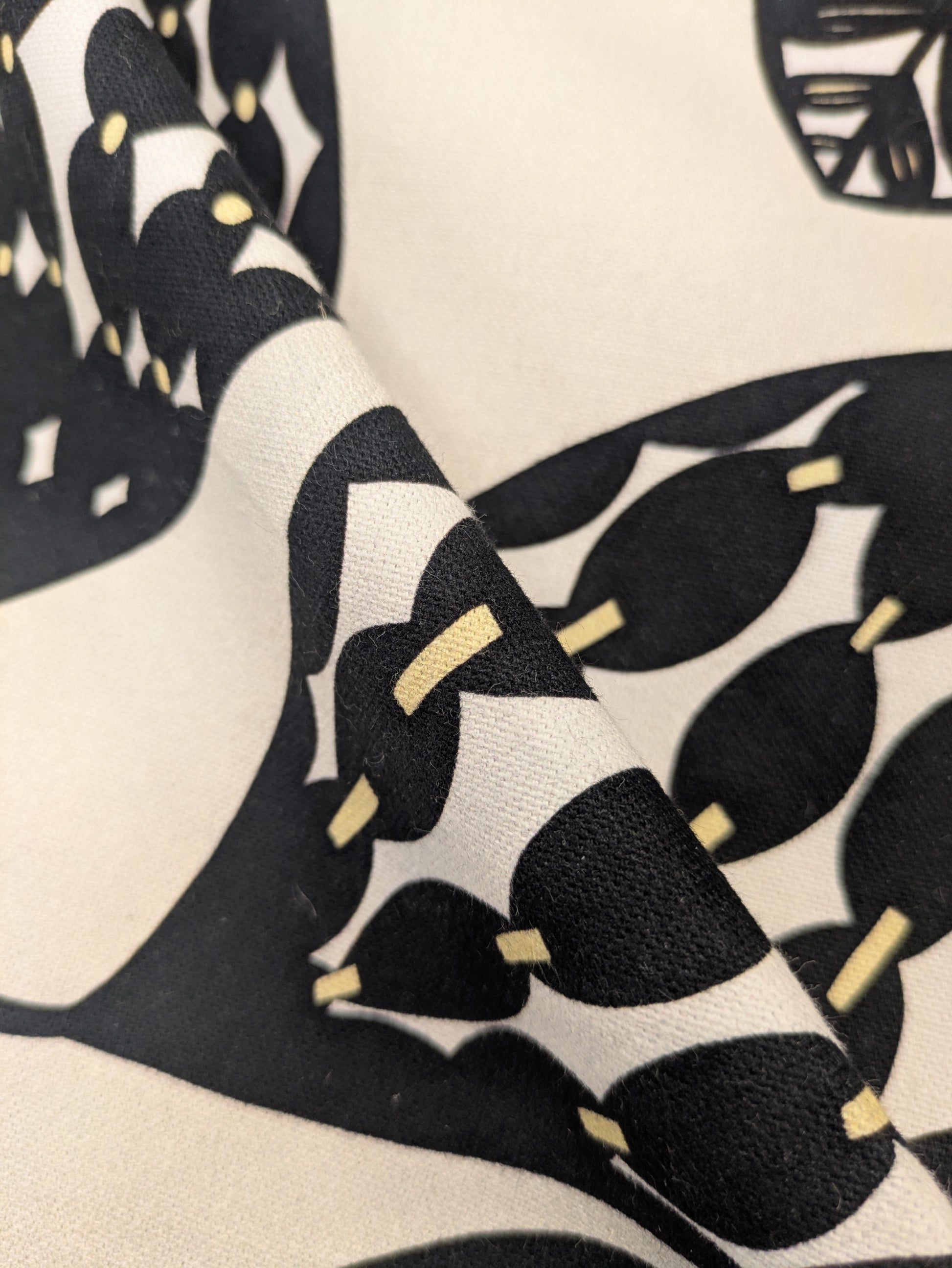 Estampado vegetal negro con pinceladas en amarillo sobre fondo crudo. Inspirado en el Folk Art escandinavo, añade un toque alegre a cualquier espacio por su dinamismo y contraste.