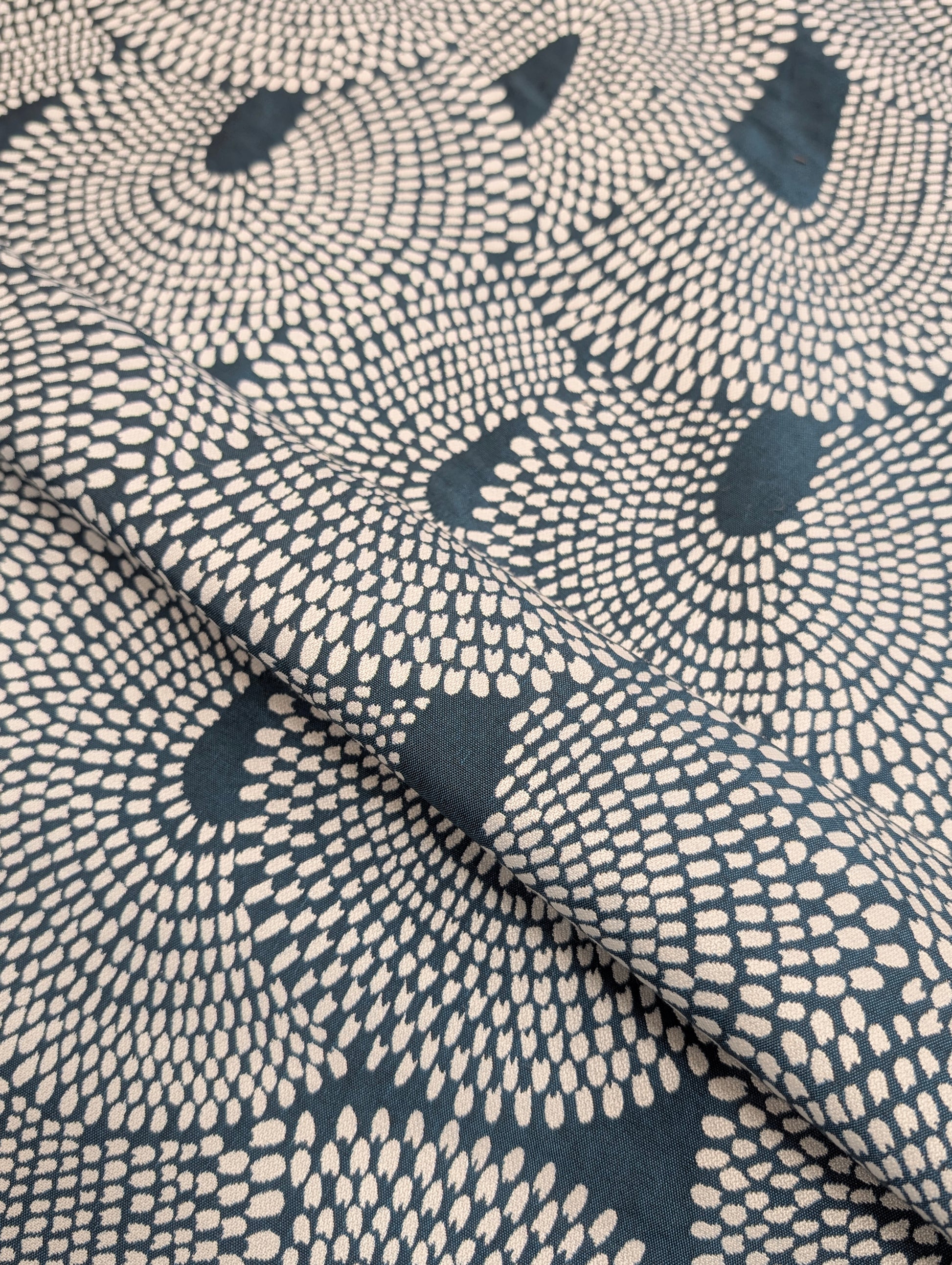 Descubre Vórtice Azul, un tejido de poliéster de 140 cm de ancho que hipnotiza. Su intenso color azul marino mezclado con turquesa te invita a crear sin límites, perfecto para transformar miles de proyectos en piezas únicas y atrevidas.